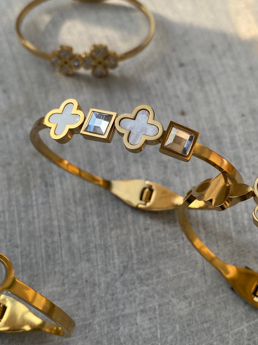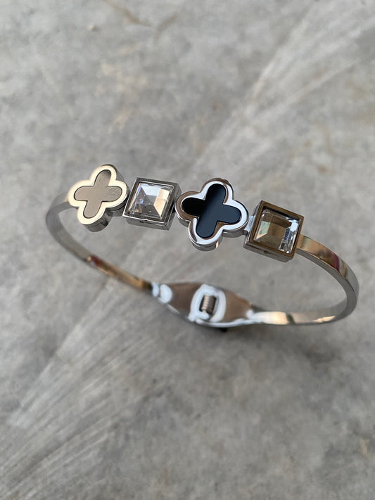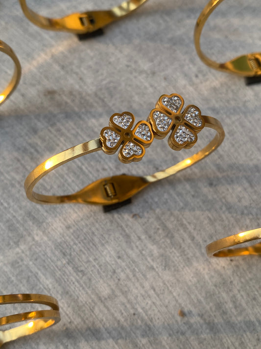 Stainless Steel Clover Cartiers (3 clovers with Rhinestones )
